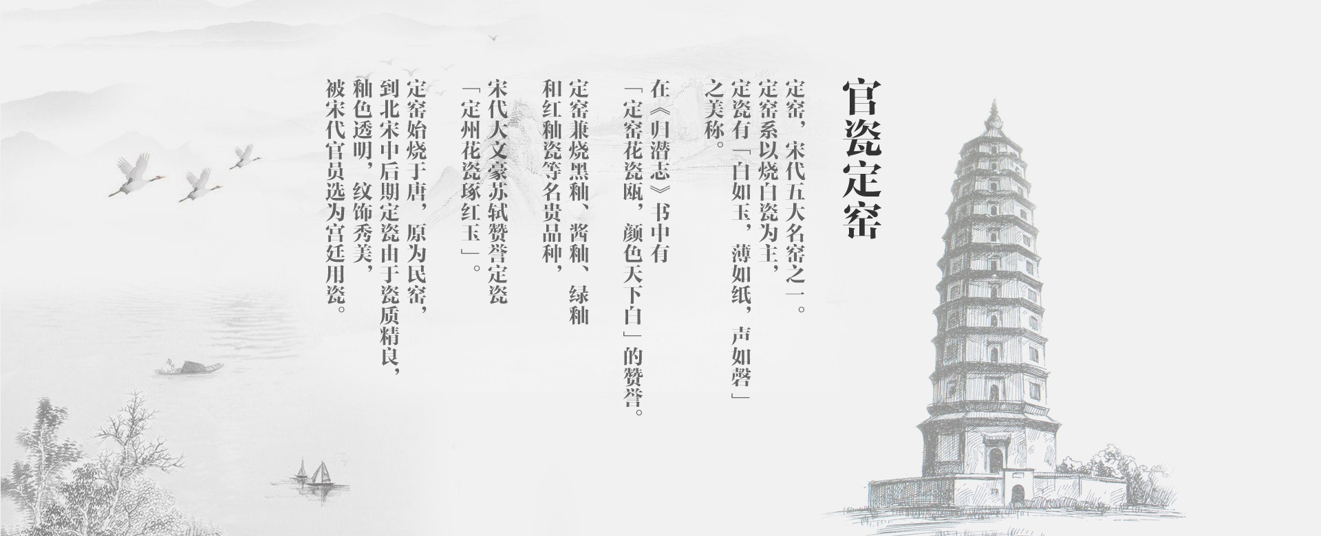 定州市官定瓷業(yè)有限公司,位于“定瓷文化發(fā)祥地”——定州,其前身是官瓷定窯文化交流中心,成立于2013年,官定瓷業(yè)是一家集定窯文化推廣,定瓷生產(chǎn)、科研的市級(jí)重點(diǎn)龍頭企業(yè),主要經(jīng)營(yíng)定瓷茶具、餐具,定瓷工藝品等。 官定瓷業(yè)秉承傳統(tǒng)燒制工藝?yán)砟睿钔谒未爸拼伞奔妓嚲瑁瑥钠魅氲纴?lái)升華茶人精神境界,“器”只是個(gè)載體,通過(guò)器能給茶人帶來(lái)“正、清、和、雅”的禪意生活。 我們本著誠(chéng)信做人,踏實(shí)做事的查看詳情
